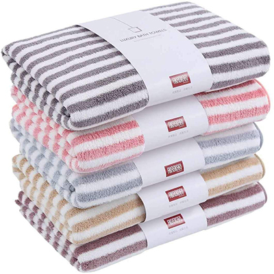 Colorful Stripe Microfiber Coral Fleece Bath Towel Custom Design